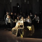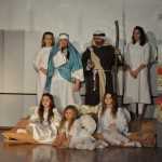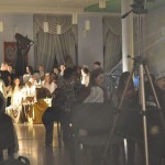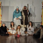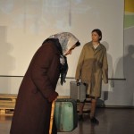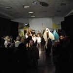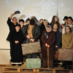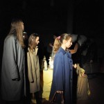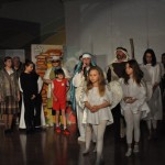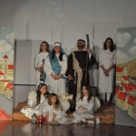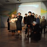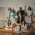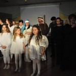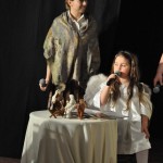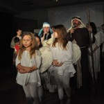 Mieliśmy okazję wejść tłumnie do sali wraz z aktorami, którzy ze swoim skromnym dobytkiem pojawili się w Bardzie, wraz z nimi przybyła kobieta, która to właśnie opisała szopkę w Bardzie i zajęła się jej rekonstrukcją, tak, by kolejne pokolenia turystów mogli ją oglądać. W tą historię wpisana jest opowieść o Marii i Józefie, szukających schronienia, by mógł urodzić się Syn Boży. Przy akompaniamencie skrzypiec usłyszeliśmy piękne piosenki świąteczne, chwytające za serce i pozwalające nam przeżyć jeszcze raz tradycję bożonarodzeniową. Na koniec w barwnym korowodzie wszyscy artyści przeszli przez salę i nagrodziły ich gromkie brawa. Nastąpiły podziękowania, a burmistrz Barda Krzysztof Żegański przekazał pozdrowienia od Olgi Tokarczuk, z którą miał okazję rozmawiać, a która bardzo żałowała, że nie była w stanie pojawić się na spektaklu, obiecując wizytę w Bardzie w niedługim czasie.