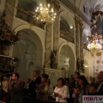 I właśnie kompozycje Marcina Mielczewskiego mogliśmy wysłuchać podczas  – zapowiadanego przez VVENA.PL – koncertu „Wratislavia pulcherrima”, jaki w miniony poniedziałek odbył się w Bardzie. Genialne utwory perfekcyjnie wykonali: Wrocław Baroque Ensemble oraz soliści: Aldona Bartnik i Agnieszka Ryman – sopran, Piotr Olech i Piotr Łykowski – kontratenor, Maciej Gocman i Karol Kozłowski – tenor,  Tomáš Král i Bogdan Makal – bas. Całością dyrygował Andrzej Kosendiak – dyrektor Narodowego Forum Muzyki we Wrocławiu. Wnętrze Bazyliki pw. Nawiedzenia Najświętszej Maryi Panny w Bardzie zamieniło się w przestrzeń umuzykalnionej medytacji. Dzięki cudownym brzmieniom bogatego instrumentarium – o którym Andrzej Kossendiak powiedział, iż jest próbą rekonstrukcji tego, na czym grano wtedy, gdy komponował Mielczewski – mogliśmy poczuć kojącą lekkość strumienia dźwięków przeniesionych staraniem muzyków z czasów baroku. Równie imponująco i jednocześnie urzekająco brzmiały głosy solistów, którzy wykonując niektóre utwory w różnych konstelacjach obdarzyli słuchaczy naprawdę cudownymi doznaniami. Perfekcyjna harmonia, jaka panowała pomiędzy śpiewakami i instrumentalistami, uczyniła koncert w Bardzie wydarzeniem na miarę najlepszych faktów w tegorocznym kalendarzu kulturalnym naszego regionu. Tym bardziej, że był to etap 50. Międzynarodowego Festiwalu Wratislavia Cantans – jednego z najbardziej prestiżowych przeglądów muzyki nie tylko na miarę Polski. Dzieła Marcina Mielczewskiego: Confitemini Domino, Deus in nomine tuo, Veni Domine, Salve Virgo puerpera, Sub tuum praesidium, Gaude Dei Genitrix, Vesperae Dominicales (to ostatnie składające się z pięciu części) otrzymały dzięki goszczącym w Bardzie muzykom artystycznie piękne oblicze. Szczerze muszę tu wyznać, że piszą te słowa – kilka dni po koncercie – nadal jestem …estetycznie rozdarty między zachwytem wobec głosów wokalistów a urzeczeniem piękną grą instrumentalistów. A już wręcz zaczarowany zostałem głosem sopranistki Aldony Bartnik. Ta występująca zaledwie parę lat wokalistka zdaje się nieść barwą swojego głosu niesamowicie łagodną, miękką i tonującą wszelkie ostrości aurę. Jej źródlanie czysty i głęboki głos zanurza w tym, co najpiękniejsze w śpiewie…