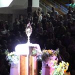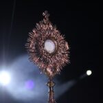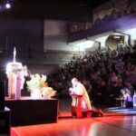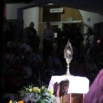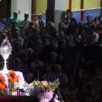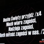 Jak wiele zatem niewidzialnych i niesłyszalnych duchowych nitek intencji modlitewnych splatało się wokół sceny, na której w kulminacyjnym momencie wystawiony był Najświętszy Sakrament? Nie wiemy… Brzmiały słowa ks. Mateusza Kuliga animującego rozważania – nasycone mocnymi akcentami ufności w Boże Miłosierdzie i intensywną potrzebą odnajdowania chrześcijańskiej tożsamości w rozedrganym na wiele sposobów świecie.