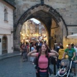 Zupełnie zapomniałam, że nosi okulary! Płaczemy ze śmiechu na środku ulicy, co wygląda przekomicznie, bo przy tym uginamy się kompletnie pod ciężkimi plecakami. Dobrze, że nikt nas tu nie zna. Rozpoczynamy zwiedzanie. Że Praga jest piękna to wszyscy wiemy, więc opowieść o tym przemilczę, za to wzbogacę zdjęciami, takimi z naszą perspektywą, bo tych pięknych na każdym kroku jest od grona. Z Czechami jest tak jakby całe piękno skondensowało się w Pradze, a na resztę kraju już nie starczyło… Dzięki czemu stolica jest prawdziwą perłą, ale niewiele więcej jest tam do podziwiania, przynajmniej po drodze. Po dłuższym spacerze zaczynamy użytkowo patrzeć na otoczenie. Nigdzie nie ma darmowej toalety, to duży minus i ciężko wypatrzeć McDonalda, w którym mogłybyśmy rano wypić kawę…